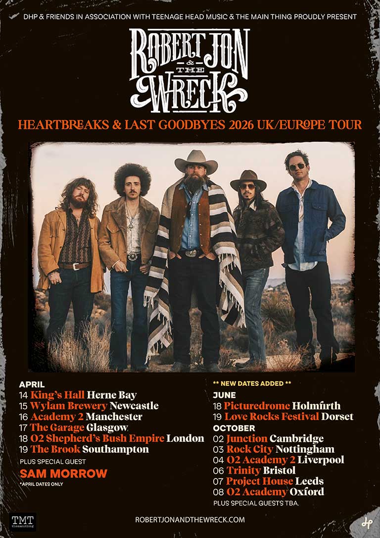 Hot off the heels of the release of their latest single “Put Your Money Where Your Mouth Is,” critically Southern Roots Rock band Robert Jon & The Wreck are pleased to announce the second leg of their 2026 UK Tour. In addition to their April 2026 UK tour dates featuring special guest Sam Morrow, the band will return to the UK in June and October to perform more concerts.